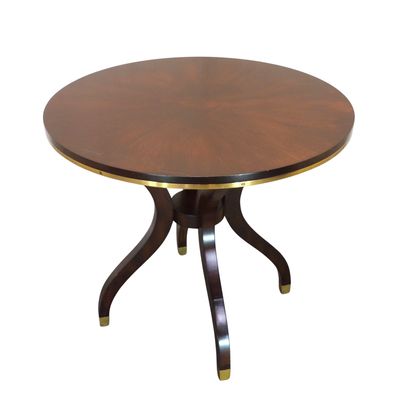 Elevate your space with this sophisticated 32" round accent table by Ralph Lauren, a piece that effortlessly blends classic design with modern refinement. Crafted with a rich, warm wood finish, the tabletop showcases beautiful natural grain patterns that add depth and character, while the subtle sheen enhances its timeless appeal. A striking brushed brass band encircles the edge, providing a refined contrast and a touch of understated luxury.